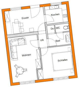 ca. 70 m² groß, moderne Ausstattung, Bad mit Dusche, WC extra, 1 Schlafzimmer mit Doppelbett,